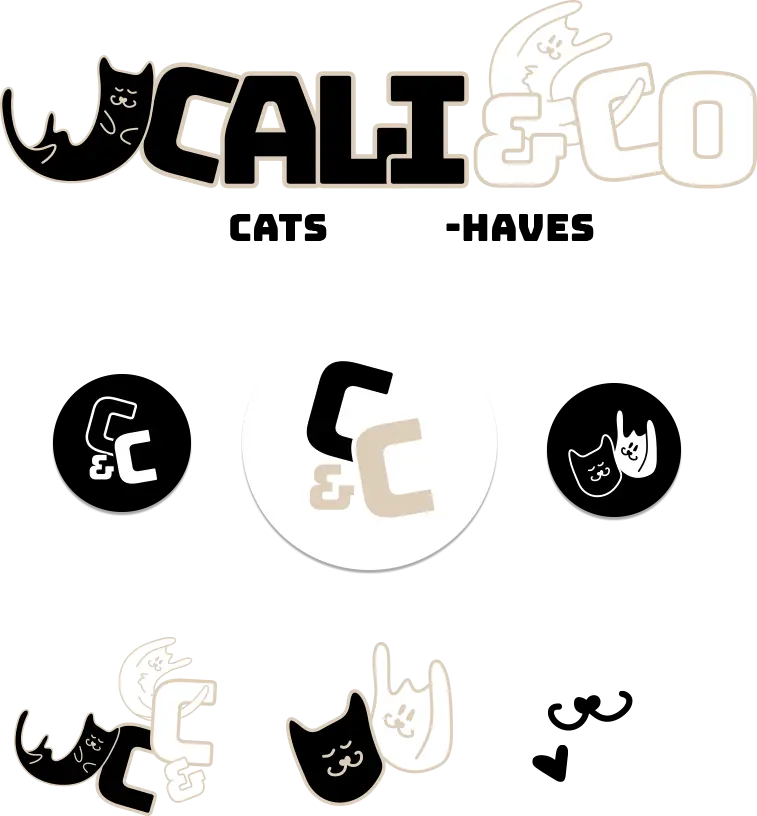 Cats are way cooler than just being cute! They are complex creatures, powered by two forces ready to switch at any moment. Cali & Co’s brand design is inspired by these two personalities of our beloved cats!