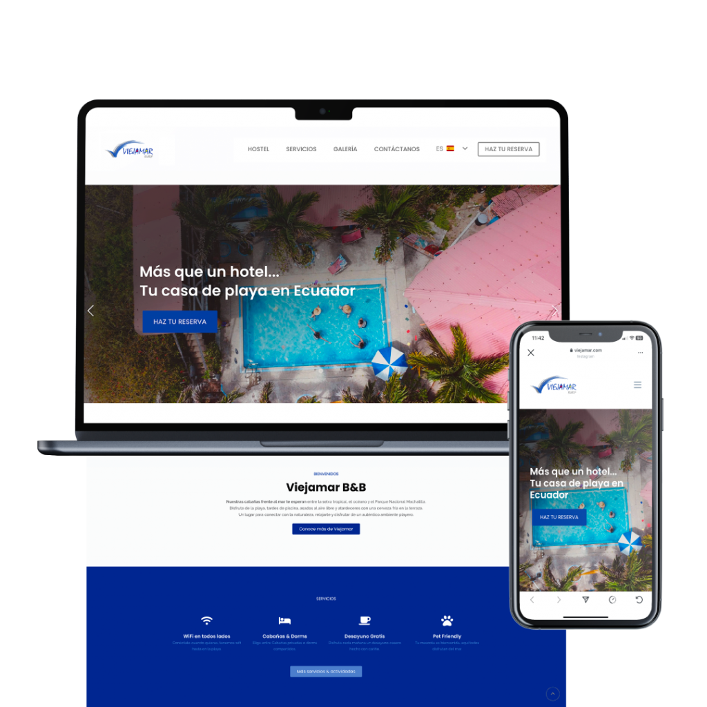 Website design and development for Viejamar, the project focused on capturing the essence of relaxation, nature, and the beach experience. A responsive structure with a clean design was implemented to optimize the user experience. The main goal was to facilitate the exploration of key services and integrate clear CTAs that maximize direct bookings. languages to connect with her international audience.